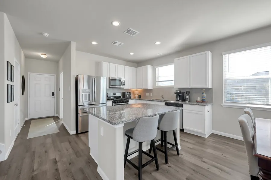 Impeccably maintained two-story home on a prime corner lot in Huntsville! This thoughtfully cared-for property offers exceptional curb appeal with fresh front landscaping and neatly landscaped shrubs along the corner fence, creating an inviting first impression. Inside the home, you'll find upgraded countertops, vinyl plank flooring and the addition of a dedicated office space providing the perfect setup for remote work. The garage features upgraded shelving for tool and storage organization and the built-out attic space offers plenty of additional storage. Step outside to enjoy a dedicated fire-pit area, perfect for entertaining or unwinding in the evenings. Additional highlights include gutters, a full sprinkler system, and meticulous upkeep that reflects true pride of ownership. Conveniently located less than 10 minutes from shopping, dining, and everyday amenities in Huntsville, this move-in-ready home delivers the perfect balance of comfort, functionality, and location.