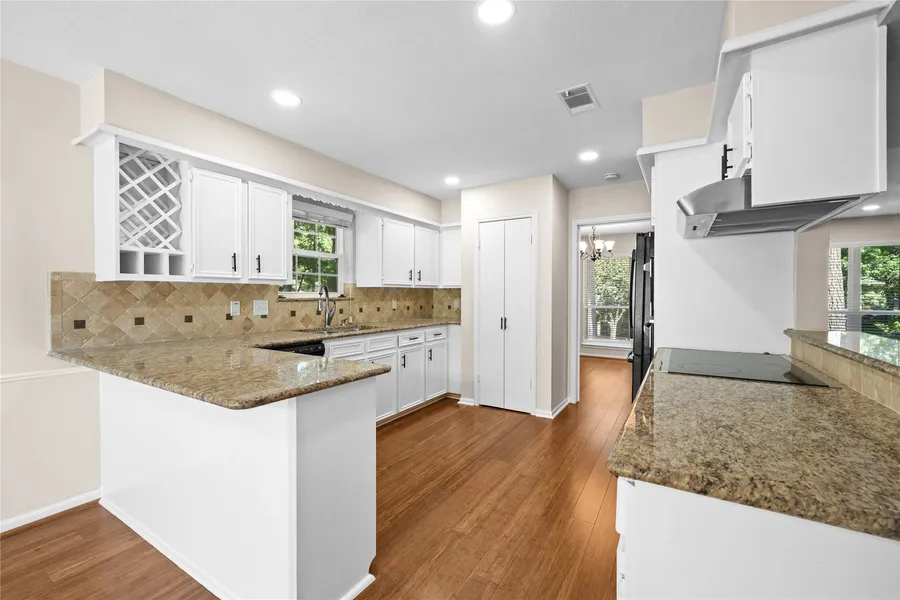Welcome to this renovated beauty in Elkins Lake! This 2039 sq ft home offers 3 bedrooms, 2 full baths, kitchen with double ovens, wood flooring, and a luxurious master bath with custom vanity. Updates include a new roof, granite countertops, and newer appliances. Enjoy the community amenities like golf courses, swimming pools, tennis courts, walking trails, and more. The property features a brick exterior, spacious living room with wood-burning fireplace, formal dining area, a large yard, and a patio for outdoor relaxation.