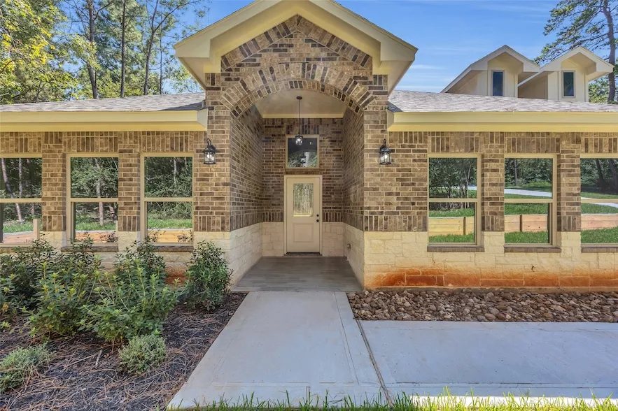 New 3233 square foot brick and stone one story home on 1.6 Acres in Texas Grand Ranch. Bright open concept with 2 large primary suites, 2 other large bedrooms with connecting bath and 1/2 bath. Gas and woodburning fireplace. Gas hookups for a possible outdoor kitchen. Sprinkler system is included. Quality construction with interior wall insulation for better sound, custom built cabinets & drawers throughout, including closets. All wood look tile on all flooring, high ceilings, crown molding. Check out the attachments for all the builder upgrades and specs. Great location just minutes from 1-45, New Waverly, and 15 minutes from Huntsville or Conroe and 20 from The Woodlands.