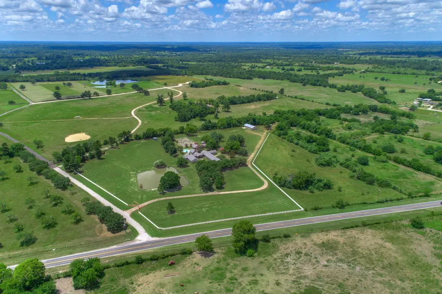 Exceptional opportunity! Minutes from town, this amazing home & setting is so much fun to see. Open concept design features high ceilings throughout, huge double paned windows, French doors w/transoms, huge kitchen, large bedrooms (3rd bdr/4th bath in pool house), 2 master baths, kitchenette w/2nd bdr,4 car garage, pool, barn w/bunkhouse, stocked pond, fenced, lighted tennis courts, concrete drives, fabulous mature trees. Truly an remarkable property. Beautiful views, well cared for. In addition to the main home, the property offers a pond, swimming pool, pool house with apartment, 40'x27' barn with 4 overhead doors and apartment with kitchen, fenced and cross fenced pastures and is beautifully manicured.