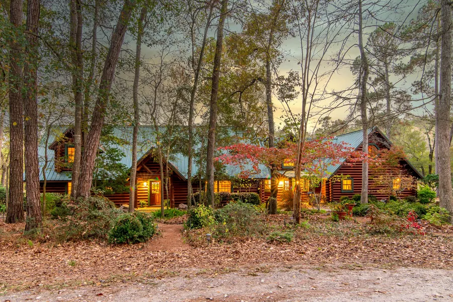 Looking for a change of pace...this incredible 5042 sq ft home is tucked into 105+/-mostly wooded acres just minutes from I 45 North of The Woodlands/Conroe area. This property adjoins the Sam Houston National Forest. Features include soaring beamed ceilings, wood and travertine floors, gourmet quality kitchen, two massive fireplaces, two living areas, large dining room, private office & a remarkable primary bedroom suite, 3 guest bedrooms, 4 full baths, 1/2 bath & incredible views of a beautiful private/stocked lake and forests. The log construction of the home is meticulously maintained & has beautiful porches, decks, outdoor kitchen and ample windows to view the scenery. Attention to detail is evidenced by amenities such as soapstone countertops in kitchen, silver foiled tile backsplash behind huge commercial sized gas range, master tub molded from one piece of travertine, graceful li...