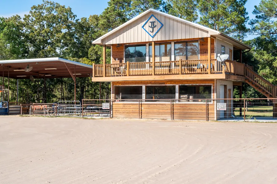 Currently, the property is set up as an equine operation but has multi-business potential. The improvements on this property are numerous. 280 x 145 lighted pipe arena with covered boxes and roping chute. 25 x 32 two story announcers stand with top floor 1 bed/1bath apartment, 3000 sq. ft. office with porch, processing facility with walk-in cooler and smoker, 40 X 100 shop with concrete floors and 6 stall horse barn with feed/tack room. Additionally, two 840 freight containers have been converted into a workshop that can accommodate larger equipment. There is an additional entrance off Hwy 190 with plenty of space for parking trailers, RVs, etc.