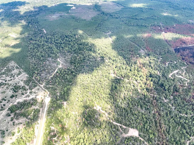 1st time open market offering. Big recreation and/or development with big topography, from eastern hilltops to western creek. Located at the end of Cedar Ridge Road with easy access from I-45. 1 hour to 1.5 hours north of Houston, Texas. Electricity along Cedar Ridge Rd. Good drainage. Good soils. Mostly wooded in varying ages of pine plantation with hardwoods in creek bottom and along creek drains. Internal woods roads. The SE portion of the tract was impacted by the Game Preserve Fire. Seller course of action TBD. Worth the look !