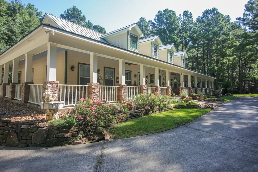 Get back to Dodge! Come escape the city life with this meticulously maintained home with over 4,400 square feet of living space on just over 21.5 acres. As you enter the property off the paved county road, you will experience a park-like feeling while you proceed down the concrete driveway towards the home. The home itself offers a serene setting featuring a large living area, 4 bedrooms, 3.5 bathrooms, a game room, large kitchen with stainless steel appliances and large island with a Thermador microwave drawer, custom cabinets and granite countertops.The primary bedroom is located on the first floor for easy access featuring a sitting area, crown moulding with back lighting and a massive walk-in closet which also allows for access to the utility room. There is also a wrap-around porch with a back patio, 2 car oversized garage, 30 x 40 metal building with a 30 x 40 lean to for your outdoor equipment. A 20 x 30 covered deck allows for a great place to entertain for parties or just an evening get together. The over 21 acres offers plenty of privacy. Teysha Vineyard is located on the neighboring property to the east. Come see all this property has to offer!