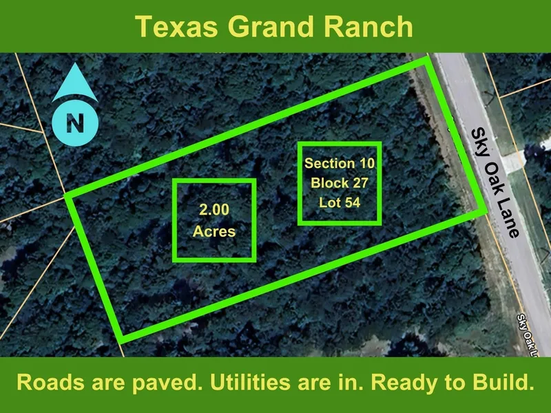 2.00 ACRES IN TEXAS GRAND RANCH > LUSH MATURE TREES > INTERIOR QUIET PARCEL > NO PIPELINES OR DRAINAGE EASEMENTS > Ready for peace & quiet & privacy? Ready to build. Start building whenever you want. Choose your own builder. EZ access to I-45. Texas Grand Ranch is a large lot, wooded community in the rolling hills. Country lifestyle for your custom forever home. Mature trees, paved roads, water & HIGH SPEED fiber optic internet. Covered pavilions, parks, ponds, playgrounds, BBQ areas. Minutes from shopping, dining, schools, hospitals, and entertainment. Low taxes - No MUD tax. HIGH & DRY - Average elevation is 325’ ASL. Surrounded by Nat’l Forest (161,508 acres) & State Park (2,083 acres) with 100’s of miles of hiking, biking and horseback riding – boat launches & beaches. Come home to Texas Grand Ranch.
