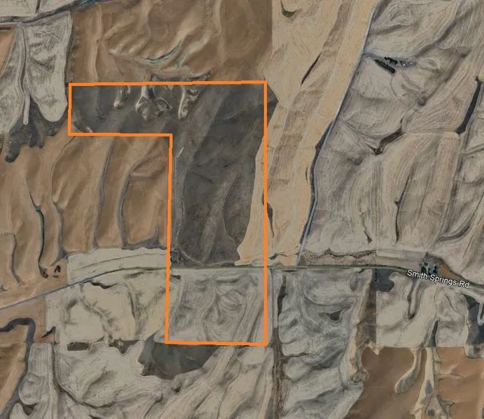 The tract is provided access from county-maintained, paved Smith Springs Road. The irregular shaped tract is fairly level along Smith Springs Road, and sloping to steep in topography in the remainder of the tract with elevations ranging from 1,530 feet along Smith Springs Road, rising up to 1,780 feet above sea level along the ridge tops of the northern area. The predominant soil type is Walla Walla silt loam, 8 to 30 percent slopes. The average annual rainfall is 15 to 16 inches. Power is available to the tract. The historic winter wheat yield is 85 bushels per acre on a winter wheat/summer fallow rotation.