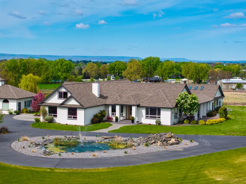 Welcome home to serenity, luxury, & panoramic views that will take your breath away. Discover a meticulously renovated sanctuary boasting extensive upgrades including a new chef's kitchen with custom cabinets, quartz countertops, high-end appliances & spacious butler’s pantry. New hardwood floors, beautifully updated baths & exquisite finishes also extend to the 335sf guest house & adjoining 2nd garage. Indulge in ultimate luxury with the indoor pool & sauna after a round of pickle ball on your new $100,000 sports court complete with eco friendly turf. House your boat or classic cars in the 1440sf 2 story insulated, heated shop/barn w/a finished game room upstairs. Build another dream home on the 2nd parcel included in 6.29 Acres of Bliss!