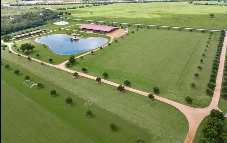 Unparalleled 297 UNRESTRICTED Acres 1/2 mile off I-10. Only 22 miles west of the Energy Corridor. ENDLESS POSSIBILITIES. Private owner or DEVELOPERS. YOU CAN'T BEAT THIS LOCATION! Perfect for a Golf Course Community, Sports, Events, Income producing. Once in a lifetime Equestrian Masterpiece! 4 immaculate Polo fields, 63,000 SF Covered Arena, home to Texas A&M Polo Team. Thats just for starters! Every aspect of this property was impeccably brought to life. Fun activities abound. New lighted Tennis court, Cabana, Lakeside beach & Dock, Zip line tower, Motocross park, and Skate park. Equestrians will love the gorgeous Spanish style 14 stall stable, 40 stalls attached to the Covered Arena, & 32 stall stable each has tack & feed rooms. Relax or entertain in the Texas Hill Country limestone Club House surrounded by graceful pecan orchards. Gourmet state of the art kitchen, open concept dining...