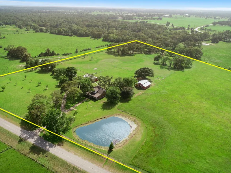 Make this Highly Improved 7 Acre Ranch Estate Yours Today! This fully fenced ranch offers a horse pasture w/hardwood trees, a stocked pond, a barn & a home. This property has so much to offer including: Gated Entry, 36X36 5-stall horse barn w/tack room, lights, fans, water lines & french drains! A hay barn w/concrete floors. The 21X56 covered equipment storage area has concrete & lights. The 6X17 walkin bird coop was built to keep out snakes. Refurbished Detached garage w/5 bays: 2 w/doors, 1 workshop & a special 20X24 room w/AC + so many extras! The 2 story ranch home features 3 spacious bedrooms (primary upstairs creating a special retreat), open concept kitchen, eating & family room, 2 baths, a library & 2 utility rooms. Home was completely remodeled in 2006 w/new electrical, ductwork & plumbing. Newly Installed High-Efficiency AC & Heating Unit & Water Heater. Too many features to li...