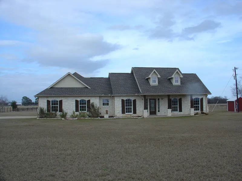 Wonderful home with many upgrades - stone woodburing fireplace, open plan, granite coutertops in the kitchen & master bath, crown molding, chair rail, tray ceilings, stainless steel appliances, breakfast bar & laminate wood floors. Master bath has double vanities, whirlpool tub & separate shower w/seat. Covered front & back porch. Nice 3-stall barn w/office, tack room, feed room, large wash rack. Priefert stalls w/turnouts to paddock & paved overhang for trailer parking. Gated entrance. Restrictions attached.
