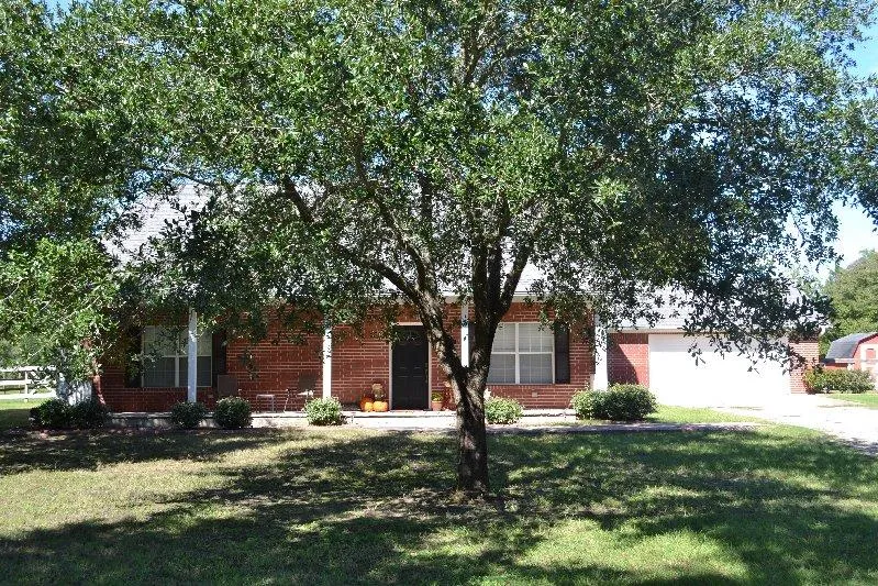 Great country setting, this all brick home sits on 1.56 acres. 3 bedrooms & 2 baths with 1,874 sq. ft. of living area & attached garage. Covered back porch gives you plenty of space to entertain. Property has a small barn & back yard is fenced separately from paddock. Mature live oaks provide an abundance of shade.