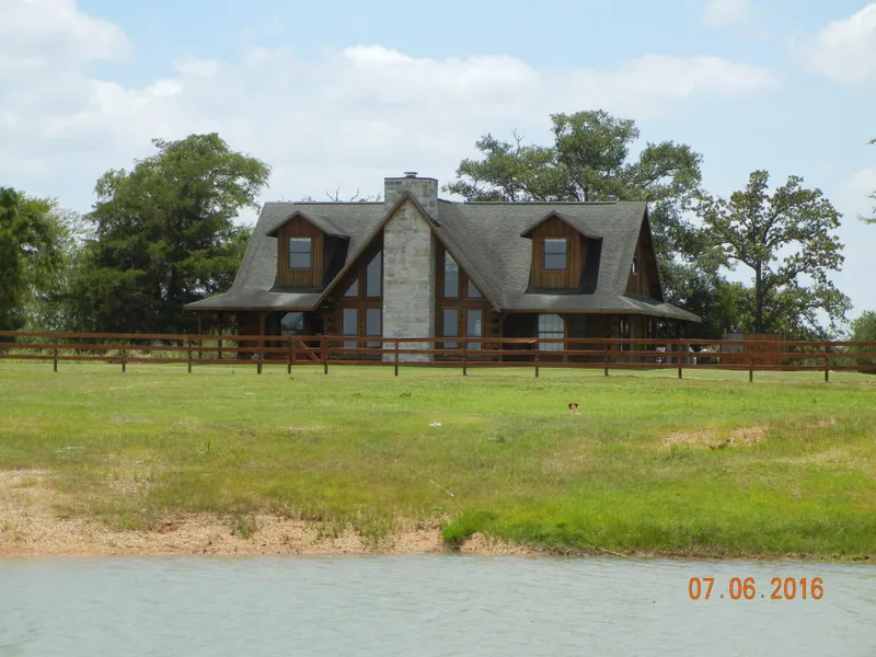 Beautiful log home on 46+ acres with a dramatic view of the large 1.5 acre pond and pastures. 4 bedrooms, 3 baths. Large loft overlooking the den with views to the pond and pastures. Bring on the horses and cattle. 3 small garden areas and one 1/4 acre plot. Custom chicken coop! Cattle working pens with equipment shed. Fenced, cross fenced with water to ALL pastures and hay pasture is Tifton! 15 acre pasture behind home has 1/2 acre pond. Scattered hardwoods with some large oaks near the home. 2 16x24 storage sheds with electric one of which has propane hook up. Underground electric to the pond. All rooms wired for data, surround sound and satellite. True Texas country living! Many extra touches make this one special!
