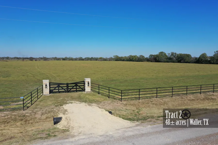 Ideal ranch homesite! Enter Tract 2 through the new custom gated entrance complete with stone columns, pipe fencing and light fixtures. Tract 2 of Waller Ranch includes 42 gorgeous acres of open ranch land with scattered trees, gated paved road frontage on Baethe Road and one pond for livestock or recreation! Bring your family and animals to build your dream home in Waller ISD on 42 acres or more. Located half a mile from FM 362, 6 minutes from Highway 290 and 47 minutes from Houston, this property offers a wonderful country location with quick access to town. Electricity is located along Baethe Road frontage. Property is fenced on 3 sides in rear. Minimal covenants present to protect property value in the area. This tract is carved from 72.5 total acres. Purchase Tract 2 or put multiple tracts together; Property lines estimated and proposed per tract. Survey present for the 72.5 acres. ...