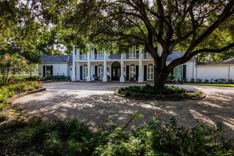 This Louisiana style Antebellum home, nestled among massive, mature Live Oaks and lush landscaping on 24+ acres embraces the French architectural style of the early Plantation homes of the South. Massive columns, front and back balconies with French doors accessing the balconies & porches from all rooms enhance the ambiance of the period. This 5529 SF (per appraiser) home has been thoroughly & luxuriously remodeled!