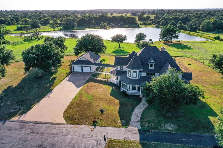 Stunning 112+ Acre Ranch Estate thats Fully Fenced, Gated & Unrestricted w/picturesque views all around! Showcasing a 2-Story Victorian Home w/5+ Bedrooms, 2 Beds Down, 3 Baths, a Dining & Living Room open to the Kitchen, Gameroom Up, a Study & a wraparound porch! Plus a 4 Acre Lake, 2 Stocked Ponds, a Barn & more! Home & Barn were Fully Remodeled in 09: All New Wood, Terrazzo & Carpet Flooring, Lighting, Custom Beams, 8Doors, Archways, Crown Molding, 8Baseboards, All New Fixtures, Cabinets, High-End Appliances, 5-Burner Gas Cooktop, W/D, Granite & more! Luxurious Master has a Walk-in Shower, Closet & a huge tub! Exterior Updates: Gazebo, New Siding, Railings, Columns, Trim, Paint & A NEW ROOF! The 10,000 sqft. Insulated Barn offers 3 Apts, TackRoom, Laundry Room, 2-3 Storerooms & a 5,000 sqft. Equip Shed! On a well, septic sys & propane gas! Prime Location w/over 1,000 ft of Frontage on FM1736. A Must See! Horses, Cattle & All Livestock are Welcome! Schedule a Private Tour Today!