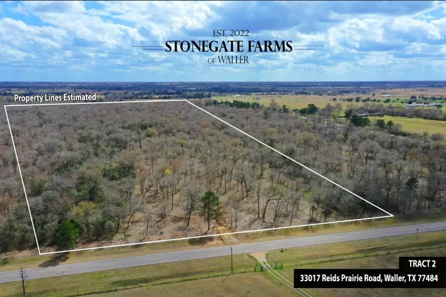 Tract 2 - Stonegate Farms is a rural community providing secluded ranch style living with stone column and iron gated entrances, pipe fencing, paved road frontage and privacy. Owners will enjoy ample homesite locations, space to build, play, retire or expand horizons with a growing family. Property includes light restrictions carefully considered to protect property values. Enjoy a wonderful mix of seclusion and open rolling land ready for panoramic views, windswept lush grasses and wide fields welcoming your legacy. This 14.444 acres is surveyed and not located in the floodplain. Land has been partially cleared while maintaining privacy; ready for homesite! Property has agricultural tax exemption. Animals welcome! No HOA, dues OR architectural control committee. Located 13 miles from downtown Waller, 28 miles to Cypress, and 55 miles to Houston.