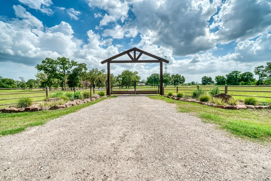 Abutting Old Houston road, 1200 feet of Priefert Ponderosa fencing beckons from both directions that you are approaching the ranchs arched automatic ga...