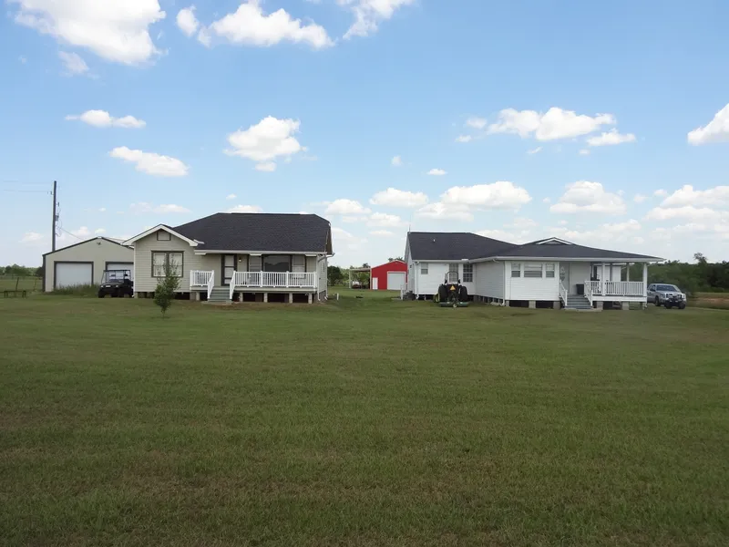 UNRESTRICTED 35.374 acres with two houses, 30'x40' metal building/garage, 30'x45' barn with 12' overhangs on both sides w/(3) stalls & a wash rack (both built in 2013), 2 ponds (1) stocked, three pastures, (2) covered stalls and working cattle chute in one pasture. The main house is 4/2.5 with an open living area and a large covered porch overlooking the stocked pond. The second house is a Craftsman style with 2/1.5 and a covered porch. Large concrete patio behind both. The houses were moved to the property in 2013, septic system installed, painted inside/out, roofs replaced (decking & radiant barrier), HVAC's (heat pump in main house, propane in small house), HW heaters, disposals, electrical and water piping in the small house. The bathrooms were redone and some kitchen appliances updated in the main house and there is no carpet in either. The metal building/garage has a separate 10x30 ft. storage area in the back. Endless opportunities with this property and minutes to Hwy. 290!
