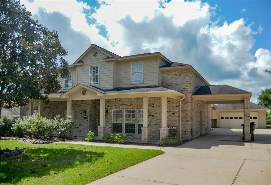 Spacious 4/3 home on one acre in Waller, TX. Fall in love the moment you drive up to this home and step through its gorgeous front door. 10ft ceilings welcome you into the opened living area that steps right out to the cool and refreshing pool/hot tub. Also on the first floor is a formal dining room, a breakfast nook, chefs dream kitchen with island, 2 guest bedrooms, a bathroom and the owners suite with separate tub and shower and massive walk through closet. Upstairs has an immense 2nd living area/game room with a wet bar. Step out onto the covered upper deck and watch the family in the backyard. One bedroom upstairs with lots of storage. This room has access to a little room that would be perfect for an office, sitting area or even a small nursery. Included is a barn with two roll up doors, separate Entrance and a loft for more living space. Take a look out your back door and see an a...