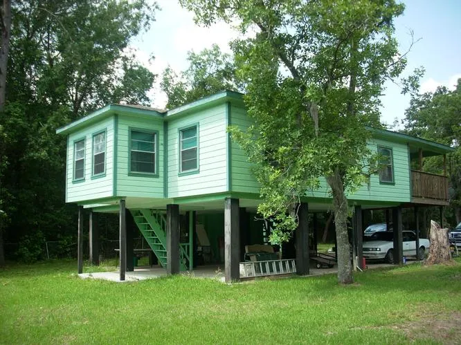 Great getaway home with frontage on the community lake to make it easy to wet that fishing line! Home on stilts with over 1/2 acre for room to play! 2 stairways for access and under the home it has concrete poured for parking and storage. Home has a nice deck to sit and enjoy the woods in its secluded location!