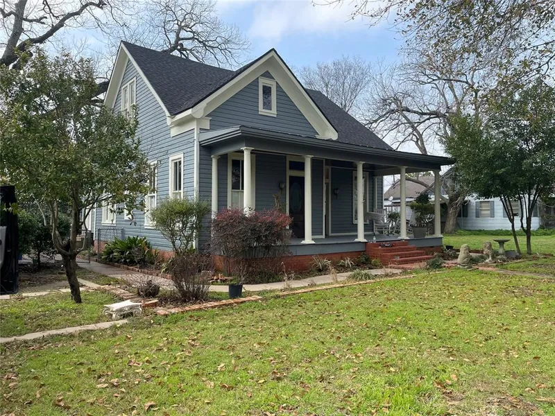 Gorgeous early 20th century home nestled in the quiet city of Hempstead. A charming covered front porch beckons you to sit and relax any time of year! Pleasantly updated with fresh paint throughout and new life added to the original wood flooring adds such amazing character! High 12-foot ceilings and double crown molding surely makes a grand statement. Home offers 3 bedrooms, 2 downstairs and one up along with breakfast room or study creating a great tucked away workspace or even workout room! Kitchen features pretty updated Quartz countertops making it gleam with pride. The bathroom has been fully renovated and boasts a heated floor for those cold Texas mornings! Fenced in backyard provides plenty of space for outdoor living. 400 sq ft storage room could easily be converted into a garage! Recently updated HVAC system, roof and sprinkler system! You wont want to miss out on owning a piece of the past brought beautifully into the future with gorgeous updates! Schedule a showing today!