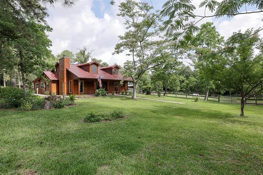 Charming country home on 2.57 acres in the popular neighborhood of Oak Hollow. This great corner location offers lots of privacy. You'll experience a warm welcome from the front porch throughout this spacious home. It features a large living room, island kitchen, 3 bedrooms, huge gameroom & an extra room that could serve as a home office. Very recent upgrades include a state-of-the-art HVAC system for optimal comfort & air quality - heat pump system, double pane windows & a full home water filtration system. The front porch offers a great space to relax overlooking the huge front yard while enjoying the sounds of the tranquil water feature. The property is fenced & x-fenced & has a 2-stall shed with tack room. There is a 2-car detached garage & a large concrete slab for future barn/workshop. Welcome to country living in a great neighborhood with a pond, park, pavilion, pool & tennis court. Easy access to Magnolia shopping & restaurants! Bring your horses. No Flood plain.