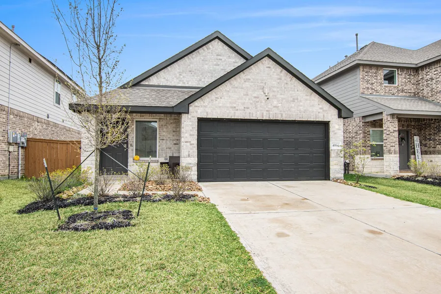 Discover this beautifully crafted one-story home featuring a full brick exterior and a covered back patio-perfect for outdoor relaxation and entertainment with your family and friends. The elegant island kitchen boasts granite countertops to prepare those gourmet meals, a single-bowl farmhouse sink, stainless steel Whirlpool appliances, and a DuPure water filtration system for added convenience. The spacious primary suite offers a luxurious garden bath with dual sinks, a separate tub and shower, and a walk-in closet. Great retreat after a long day. Generously sized secondary bedrooms provide ample space, while the indoor utility room adds everyday ease. Include a Rinnai tankless water heater, full sod, and a front and back sprinkler system. Luxury vinyl plank flooring adds both style and durability. Enjoy the amenity center, featuring a resort-style pool, lazy river, lagoon, lakes with walking trails, dog park and gym. zoned to great schools, close to shopping & entertainment.