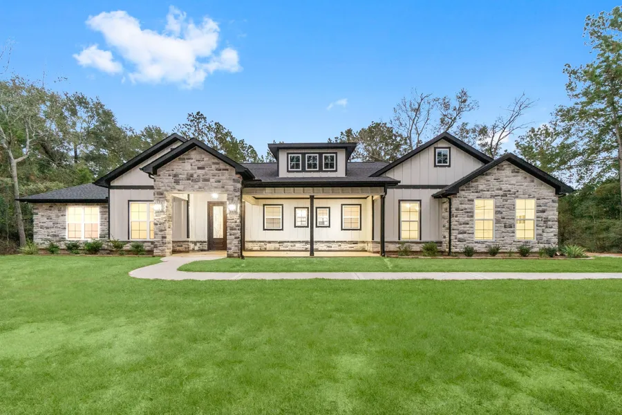 Discover this brand new luxury home on 2 acres, located in Saddle Creek Forest. A Gated Community with many amenities: basketball, volleyball & tennis courts, pool, lake, riding trails & arena! Set back from the road for ultimate privacy, this home boasts large, picturesque windows that provide abundant natural light. The kitchen is a chefs dream with stunning granite, custom built cabinets, farmhouse sink, stainless steel appliances, 5 burner gas cooktop, walk-in pantry, & a large island overlooking the living room. Beautiful luxury vinyl plank flooring that is waterproof making cleaning a breeze! Impressive master suite, very spacious, with a luxurious spa-like bathroom & fantastic closet! The 2 spare bedrooms share a Jack & Jill bathroom. Formal office (could make a 4th room), grand foyer, formal dining, large covered patios, oversized two car garage, laundry & mud room! Low taxes! High & Dry! Great location! 10 miles to Magnolia, 50 miles to Houston, 42 miles to College Station!