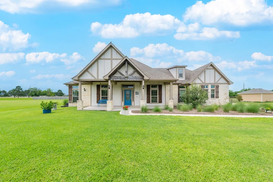 Welcome to 2119 Blue Jay Way – a custom-built 3-bedroom, 3.5-bath single-story home nestled on a pristine 1-acre lot! This thoughtfully designed residence features an Austin limestone and Hardiplank exterior, tempered glass windows, and a water softener for everyday comfort. Inside, you'll find luxury vinyl plank flooring, granite countertops, 8-foot doors, plantation shutters, and a spacious office. The expansive primary suite includes two private bathrooms and two walk-in closets, offering unmatched functionality. The open-concept living area is perfect for entertaining, and the home is equipped with PEX plumbing and a tankless water heater. Step outside to a beautiful in-ground pool and hot tub with a lanai, a stone firepit seating area, and a fully sprinklered front yard. This one-of-a-kind home blends custom craftsmanship with resort-style living—don’t miss it!