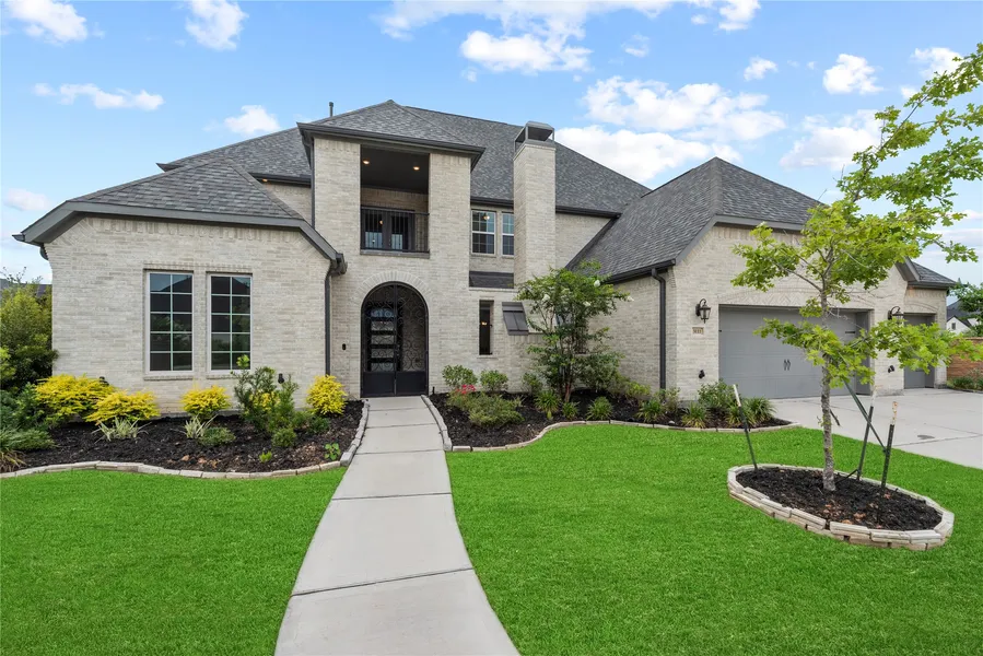 A rare gem in Cane Island's prestigious Master Planned Community, this breathtaking two-story estate resides on a 14,105 sq ft premium cul-de-sac lot shared with only one other home-offering unrivaled exclusivity and privacy. Behind a timeless brick and stucco facade, an enclosed gated courtyard with a statement brick fireplace, sets the tone for sophisticated living. Inside, the grand entry reveals soaring ceilings and a striking cable rail staircase framing an airy, open-concept layout. The chef's kitchen dazzles with an oversized island, stainless steel appliances, pot filler, and walk-in pantry, while sliding pocket doors reveal an expansive patio designed for luxe entertaining. Every bedroom is a sanctuary with en-suite baths, while the upstairs game and theater rooms-complete with kitchenette, wet bar, and beverage center-bring elevated leisure home. A 4-car garage, covered balcony...