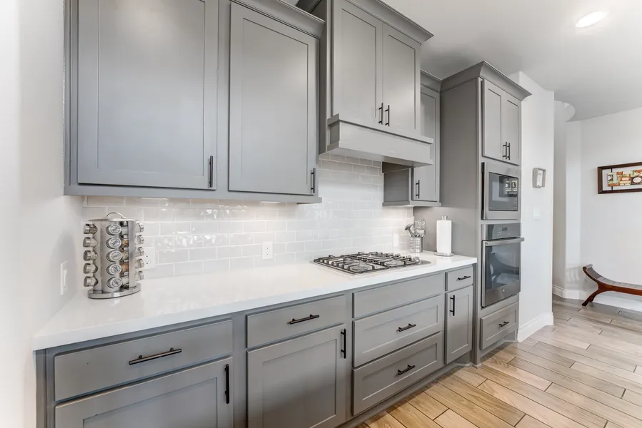 Welcome to this stunning property featuring a mahogany front door, a two-story entry with a 19-foot ceiling, and a guest suite at the entry. The home boasts a library-office with French doors, a large kitchen with an island and built-in seating, as well as a corner walk-in pantry. The open family room offers a wall of windows, while the private primary suite includes a dual vanity, garden tub, separate glass-enclosed shower, and two walk-in closets. Upstairs you'll find a game room, media room, and secondary bedrooms. Enjoy outdoor living on the covered backyard patio and take advantage of the two-car garage. For more information or to view the property contact the listing agent.