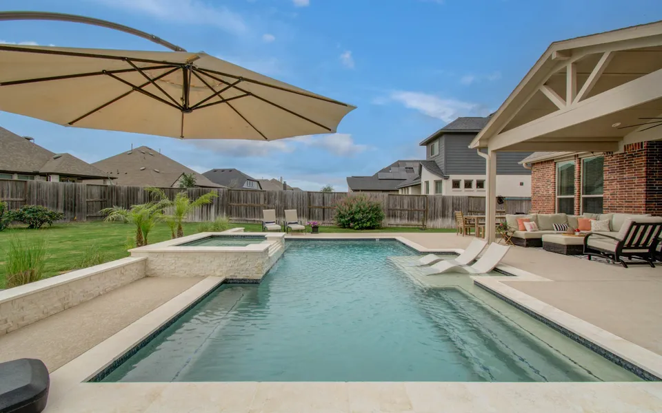 MOTIVATED SELLER! This stunning home located in Cane Island, zoned to the sought-after Katy ISD school district has 4 bedrooms and 4 bathrooms, 2 of these bedrooms and bathrooms are located downstairs. Upstairs has a game area, 2 beds and 2 full baths. Property features a spacious layout with high ceilings and abundant natural light. Primary bedroom overlooks the backyard where you can open the window and hear the waterfall from the sparkling pool. Bathroom has separate soaking tub, vanity area, walk in closet with custom Elfa shelving. The living room includes a cozy gas log fireplace. Outside has a large, self cleaning heated pool, built in 2022, lounging ledge, hot tub, cool decking plus removable safety fence. Large extended 24x12 covered patio with TV hook up, 2 outdoor kitchen stations, one with a Blackstone grill built in. Garage is extra large with epoxy flooring, driveway has b...