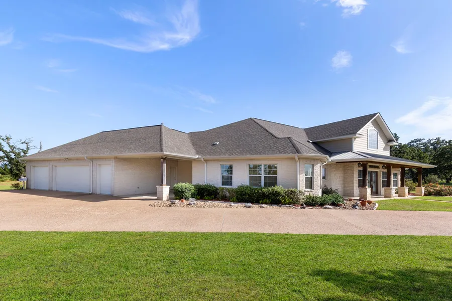 NEW ROOF! Discover your slice of paradise in this stunning 3 BD, 2.2 BA home nestled on over an acre in an exclusive gated golf course community. Wake up to views of the 14th green from your front porch! The living room features vaulted wood-paneled ceilings that creates an impressive backdrop. The spacious kitchen features granite counters, built-in refrigerator, double ovens, and a breakfast bar perfect for morning coffee or evening wine. The primary bedroom suite is a true retreat with whirlpool bath, separate shower, dual walk-in closets, and double vanity. Adjacent flex space offers endless possibilities as an office, workout room, or nursery. Two additional bedrooms share a convenient jack-and-jill bath. Outside, entertain in style with a pool, extensive covered patio, and built-in grill. The 15x15 shed provides extra storage, while the 3-car garage plus golf cart space accommodates all your vehicles. Circle drive entry adds elegance to this golfer's dream home.