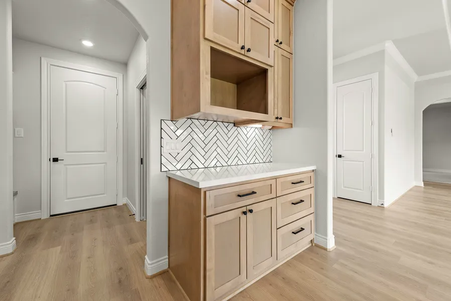 Brand New and no back neighbors. This brand-new construction masterpiece boasts a modern and inviting open floor plan, perfect for living and entertaining. This custom home includes: Solid Custom wood cabinets, with tall baseboards, high ceilings, stained wood beams, sprinkler System, full gutters, garage door opener and cabinet hardware. Step inside to discover the seamless flow between the spacious living, dining, and kitchen areas. Natural light floods the space through large windows, creating a bright and airy atmosphere. The heart of the home, the gourmet kitchen, is equipped with state-of-the-art appliances, sleek countertops, and ample storage, making it a chef's delight. 10 minutes or less drive to 290 and 25 minute drive to I-10, this home is in a perfect location, close to the outlet mall, but still in the country.