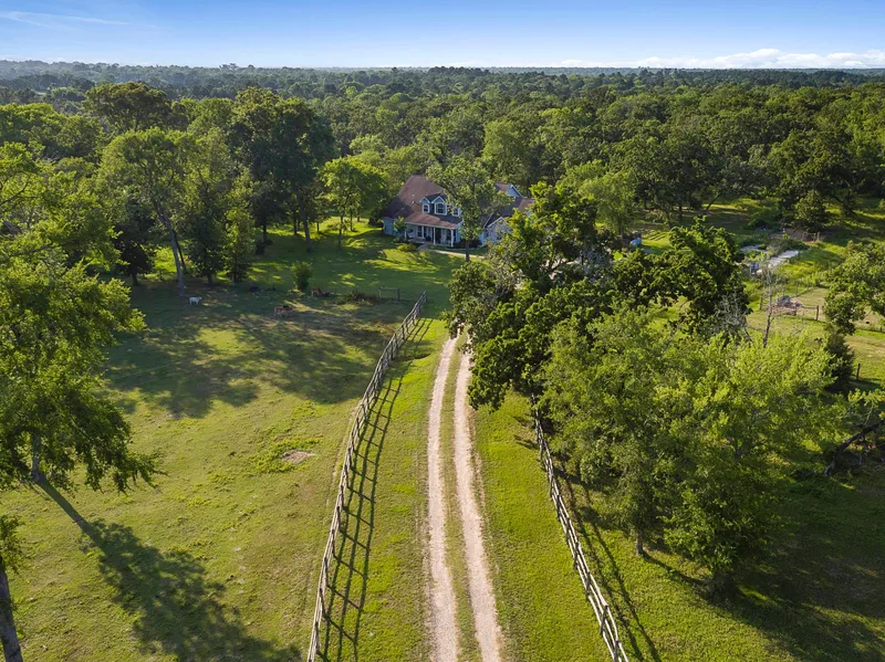 Gorgeous country retreat sits on 14 pastoral acres and is less than 1 hour drive to Houston. There's plenty of room for family and guests with 5 bedrooms, 3.5 baths, gameroom, den, and sunroom. Entertain in style in the island kitchen with breakfast bar, gas cooktop, and spacious walk-in pantry. The private master suite boasts a sitting area, double closets with sliding barn doors, his & her sinks, and large walk-in shower. Relaxing is easy on the extensive covered patio with BBQ grill and fire pit. Other features of this beautifully wooded property include 4-stall barn, chicken coop, and 2 car garage.