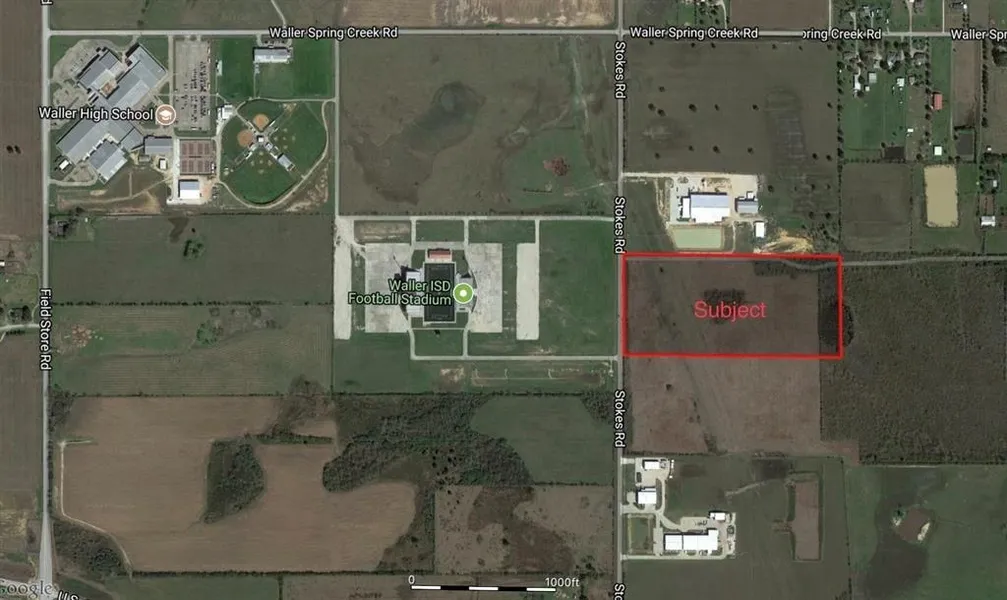 Hard to find 24.18 acres with City of Waller Utilites available. Can be used for residential, multi-family apartments or commercial use. There has been a recent population and construction boom going on around Waller. Property is located less than 4 miles from the new Daikin Manufacturing Facility. Property has +/- 697 of frontage on Stokes rd. Property has agricultural tax exemption with very low property taxes.