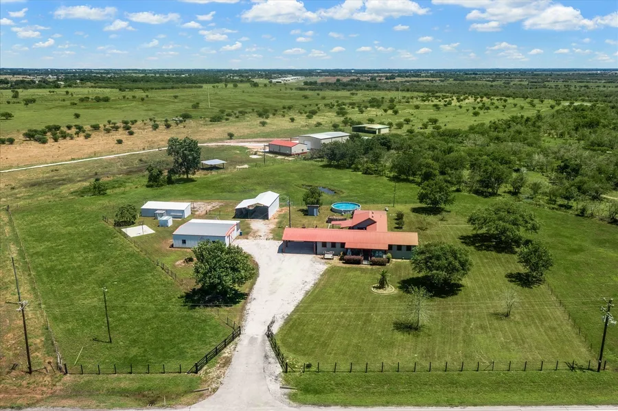 UNRESTRICTED, HORSES ALLOWED, AIR-CONDITIONED PARTY BARN, RV CARPORT, LOW TAXES, FULLY FURNISHED AND MOVE IN READY in Waller County! Completely remodeled 2022, with recent additions of upgrades to the Party Barn and an OUTSIDE BATH HOUSE! Recent Inspection Reports available on the house, septic, well. Easy living one story Ranch style home with huge front porch and back porch too! Very Quiet! the perfect place of peace and serenity. Great for entertaining and family gatherings. The dining room table sits 16-20 easily. Close to the Waller County Fairgrounds, and half-way between I-10 and HWY 290. Nice Game Day option too! Owner's plans have changed and they're ready to sell!