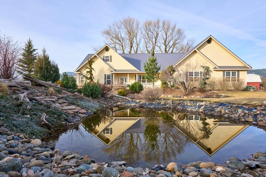 The house has a long lasting metal roof, easy to maintain vinyl siding and a covered front and back porch with composite decking material. There is a well for domestic water and a standard septic system. In front of the house is a pond with a waterfall and nice landscaping all around. There are nice views of the valley and the Wallowa Mountains.