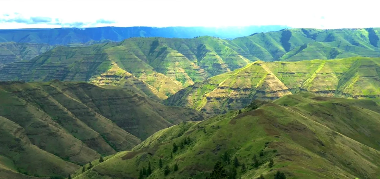 Massive Rim Rock, large stands of timber, natural mineral sites, meadows,
