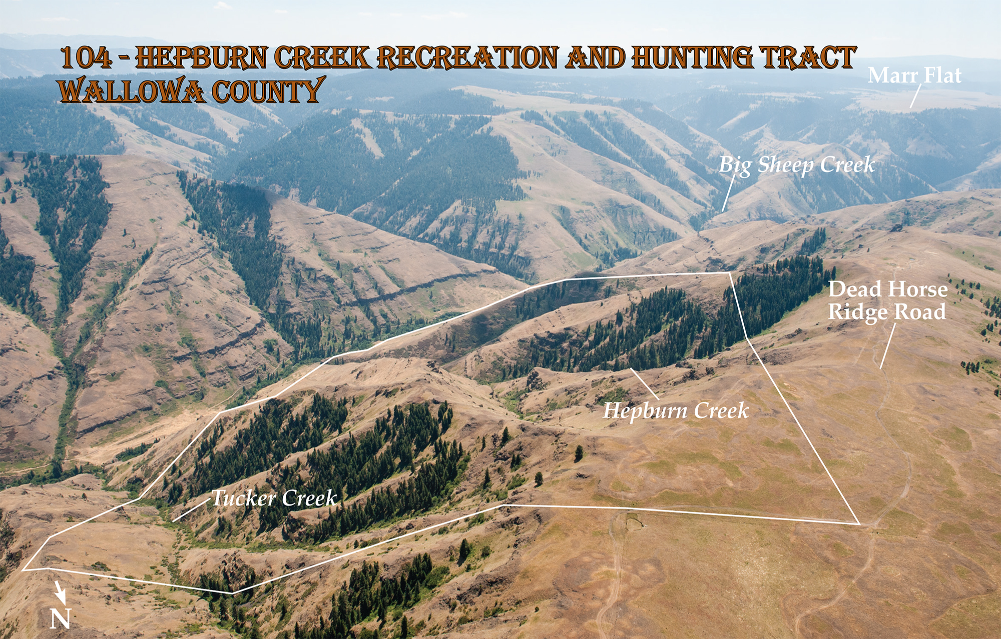 The 480 acre Hepburn Creek Recreation and Hunting Tract is located along the southeast-facing slopes of Dead Horse Ridge, with access to the northwest section from Dead Horse Ridge Road. This part of the property is a ridgetop, and could accommodate a base camp for hunting. It will qualify for up to two Landowner Preference Tags.