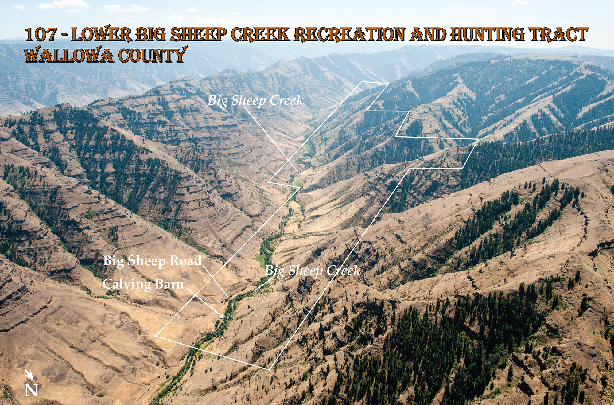 The 720 acre Lower Big Sheep Creek Recreation and Hunting Tract is located 28 miles northeast of Joseph and 3.5 miles south of the riverfront community of Imnaha, gateway to Hells Canyon National Recreation Area. Imnaha Highway (OR 350) is less than three-quarters mile northwest of the property. There is access via a private road along Big Sheep Creek.