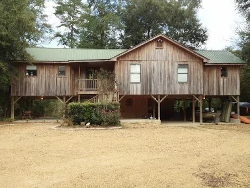 This home sits directly on the Bogue Chitto River. It features 1,479 SF and is currently set up as 2BR and 2B, but could be converted back into a 3 Bedroom. It has a metal roof, cypress board and batten siding, and is built off the ground, providing a great use of space underneath. The home has a tremendous amount of deck and porch space for you to enjoy the outdoors. The home sits in a private setting surrounded by big shade trees, and it even features an artesian well. This part of the river is wide and quiet. It's deep enough to run a boat with a motor.