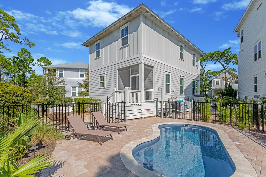 This fully-furnished beach house in popular Highland Park is the only home in the community to boast a private pool. With three beds and two baths, its one of the smaller homes in this sought-after area on 30A and offers an excellent return on investment for those in the market for a vacation rental or second home. Situated on a corner lot with lake views, the newly installed in-ground private pool and hot tub can be enjoyed year-round. Everything feels like new in this contemporary two-story beach house, which enjoys ample daylight through tall windows. Youll notice the gleaming hardwood flooring the moment you enter the open living room with crisp white decor creating a calming ambiance. Theres plenty of space for entertaining and celebrating in the formal dining area beneath a feature chandelier. Move into the comfy sitting area and put your feet up in this comfortable space. The pristine kitchen stretches across one end of the family room with an island providing a space for casual dining or serving drinks and appetizers when guests drop in. Stainless steel appliances and ample work space combine in this practical well-planned area. Upstairs, three spacious bedrooms and two bathrooms are beautifully appointed. The generous master suite has a spa-like bath with his-and-hers vanities, a walk-in closet and a private balcony for enjoying those first tranquil moments with nature before the day begins. The screened back porch and paved patio provide desirable outdoor living space with ample room for loungers and a barbecue or smoker. The beach beckons just a short golf cart ride or 10-minute walk away and theres a choice of reputable eateries nearby. Community amenities include a lagoon pool with hot tub, walking trails, an observation tower and a community fire pit for social gatherings.