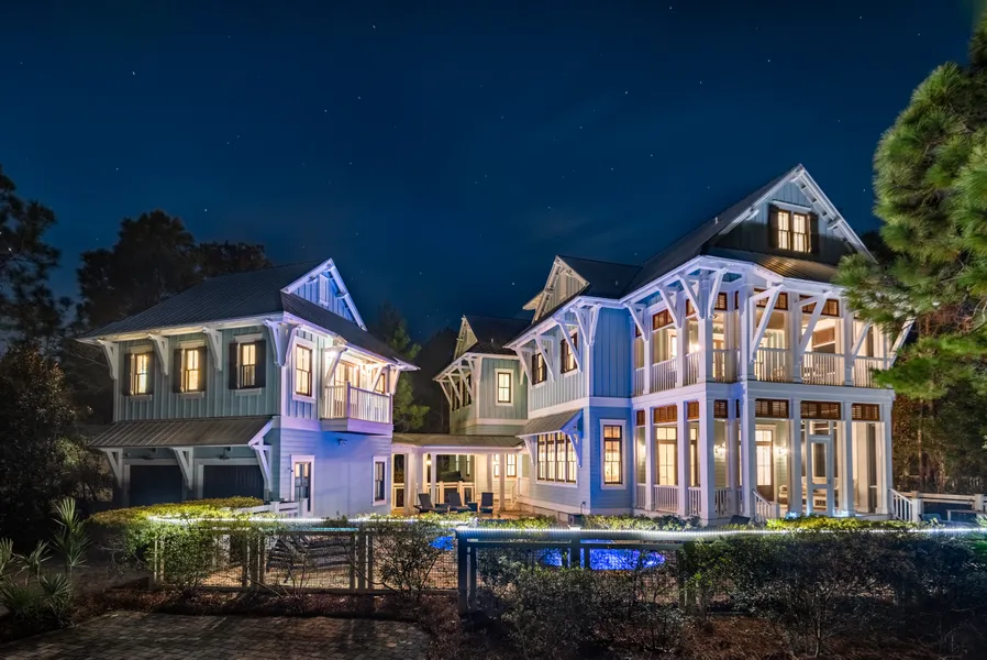 Designed by TS Adams Studio, this WaterColor masterpiece is an exceptional collection of amenities and location. From its spacious floor plan of just under 5,000 square feet to its thoughtful finishes including pecky cypress ceilings and wide-plank refinished flooring, this home is one of the top rentals in WaterColor thanks to its lush, private setting; large, heated pool; and, generous pie-shaped lot that overlooks a serene pond. Step beyond mature pines to the multiple porches and on into the interior of the home, which features all en suite bedrooms — ideal for large gatherings or corporate retreats. The gourmet kitchen boasts top-of-the-line appliances, marble countertops and a massive breakfast bar with seating in an open-concept design. A large dining area has seating for 10 and spacious living spaces give everyone their own nook. The interiors are only outdone by the resort-style outdoor spaces this home provides including a heated pool with sun shelf and water feature, hot tub, outdoor fireplace and kitchen, audio surround system, outdoor shower and plenty of deck space for relaxing and entertaining. Parking is ample for at least four vehicles. Guests will also enjoy the well-appointed carriage house that sits above a two-car garage with combined living/sleeping quarters, a private bath and a full kitchen. In addition to the remarkable property features, WaterColor guests have access to a host of world-class amenities including a beach club, Camp WaterColor, outdoor recreation opportunities and all of the shopping and dining your heart desires. Situated between Camp WaterColor and Publix in WaterColor's Phase II, this property is a respite not soon to be forgotten.