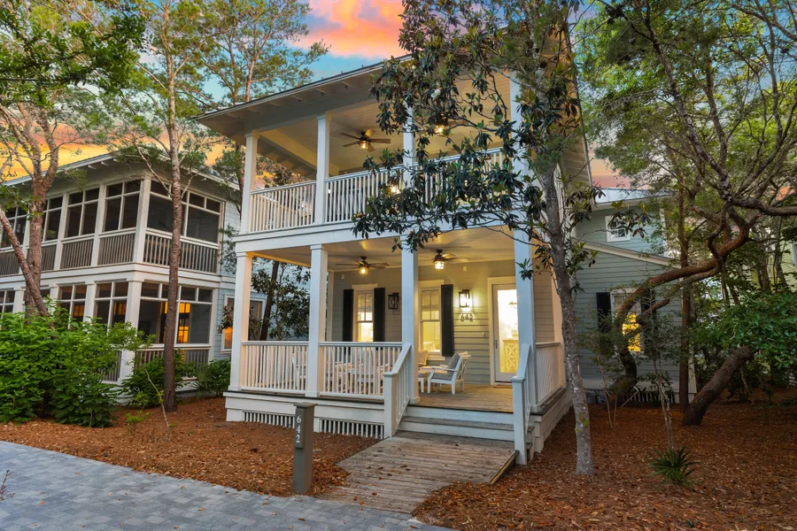 This luxury home in the coveted WaterColor Lake District is just steps from the exclusive Beach Club. It delivers the highest level of luxury living after sensitive remodeling by renowned custom builders, Borges Brooks. Soothing pastel decor, tall windows and custom artwork set the scene for the laid-back living space. Gleaming reclaimed teak flooring from Indonesia adds warmth to the pristine living room, connecting the bright sitting/TV area with the dining area and beautifully remodeled entertainer’s kitchen. High-end stainless steel appliances and a large breakfast island provide the perfect place for welcome cocktails and gossip beneath the seagrass pendant lighting. Chefs will appreciate the 48-in. Wolf range with grill, 36-in. Sub-Zero refrigerator and wine cooler for serving perfect drinks and appetizers. Mealtimes can spill outdoors onto the screened back porch with a family-sized dining table. There’s a gas grill and outdoor shower for rinsing off sandy feet nearby. Two lavish master suites include a free-standing tub, mosaic tile flooring and a separate walk-in shower in the first-floor ensuite wet room. The second-floor master has a beautiful bathroom with stone walls and an unusual walk-in closet with built-ins. It has its own private balcony for chilling out after a fun-filled day. There’s also a bunk room, laundry and an additional guest bedroom to comfortably accommodate family and friends. At the top of the stairs, there’s a cozy sitting area with a love seat and flatscreen TV for watching the game. Enjoy a good book or relax on the adjoining covered porch with the ultimate treetop views while catching the breeze. Days are filled with swimming, fishing and watersports at the beach or on Western Lake. Float down the lazy river or go for a bicycle ride along the miles of boardwalks and nature trails. The house is sold turnkey, including all the carefully curated furnishings, decor and appliances. It’s an amazing opportunity to secure a luxury home with a 30A lifestyle and instant appeal to the rental market.