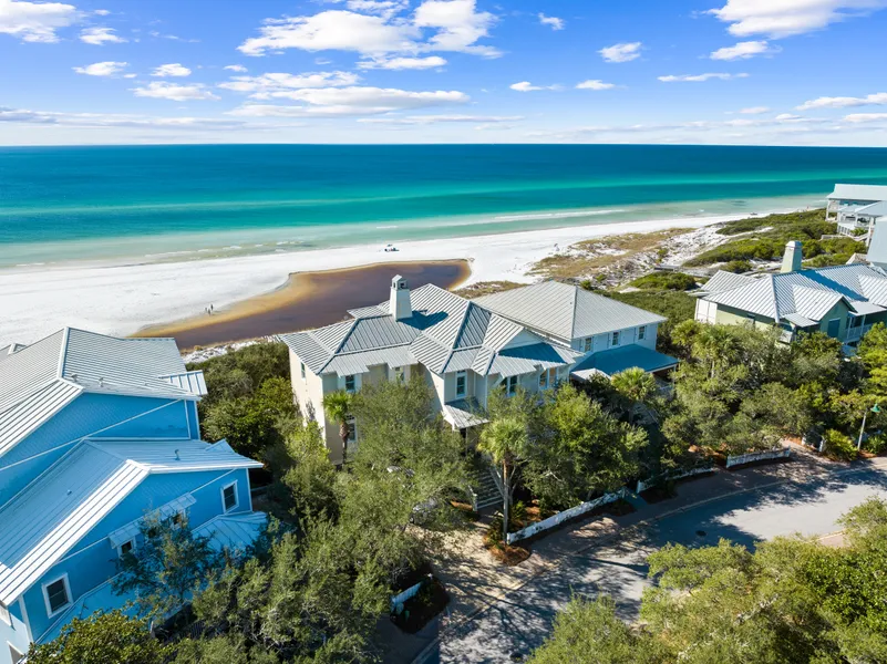 Combining stunning beach and gulf views with limitless recreation opportunities, this gulf-front beach house has its own Trex plank walkover. Head down the steps and through the dunes to the white sandy beach for peaceful morning walks. Return for a hearty breakfast at the high-top breakfast bar in the fully equipped kitchen. Granite countertops, a separate island cooktop and a butler’s pantry make this the perfect kitchen for chefs and those who love to entertain. Follow the cool tile flooring into the spacious great room and admire the stunning views and warming fireplace beneath the beamed ceiling. A glittering chandelier marks the dedicated dining space. Double-aspect windows invite you out onto the generous screened porch to enjoy expansive gulf views. The second-floor balcony is the perfect place for sunset drinks. This impressive beach house was expanded and remodeled to include six beautiful bathrooms and six bedrooms including a bunk room. The master suite delivers amazing views of the sparkling emerald waters through two sets of French doors. Painted shiplap walls and ceilings connect with the coastal location while polished wood floors and a bridge-like porch give a nod to the decks of passing sailboats. Step out onto the spacious balcony to start the day with a fragrant mug of coffee and the company of seabirds. Located near Draper Lake, this upscale vacation home is all about living life to the fullest. The gated resort has a community pool and a dock providing access for kayaking, paddleboarding and fishing on Draper Lake, a rare coastal dune lake. After a day of swimming, shelling and watersports, rinse off at the outdoor shower then relax in your private seating area listening to the waves. When you fancy a change of pace, Gulf Place shopping and a choice of eateries are just a mile away.