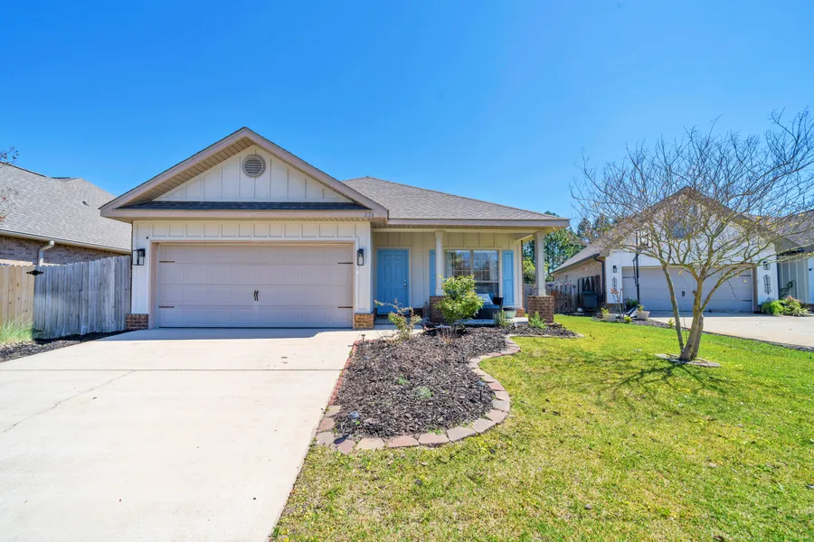 Welcome to this tranquil enclave, where comfort and elegance converge in this inviting three-bed, two-bath home. Nestled within the esteemed community of Whispering Lake, this home offers a haven of serenity amidst meticulously maintained surroundings. Step inside to discover a versatile floor plan boasting a formal dining room or office space, perfect for accommodating your lifestyle needs. The spacious kitchen, overlooking the living area and additional dining space, creates an inviting atmosphere for culinary endeavors and gatherings alike. Retreat to the master bedroom, where a tray ceiling adds a touch of sophistication and an en suite bath beckons with a tiled walk-in shower and indulgent soaking tub. Additional bedrooms, thoughtfully situated within the split floor plan, ensure privacy and comfort for all. Outside, bask in the Florida sunshine within the fenced backyard, which provides a private retreat backing up to a lush preserve. The attached two-car garage offers parking and ample storage space. Conveniently located just minutes from the pristine beaches of the Emerald Coast and the charming boutiques of Santa Rosa Beach and Destin, Whispering Lake presents an ideal setting for families, couples or individuals seeking either a primary residence or a second home. With private streets for walking and biking, this community fosters a sense of tranquility and connectedness, offering a wonderful opportunity to embrace coastal living between the bay and gulf. Whether it's a leisurely bike ride to Ed Walline Beach Access or an adventure to Cessna Landing on Hog Town Bayou, Whispering Dunes promises a lifestyle of ease and enjoyment.