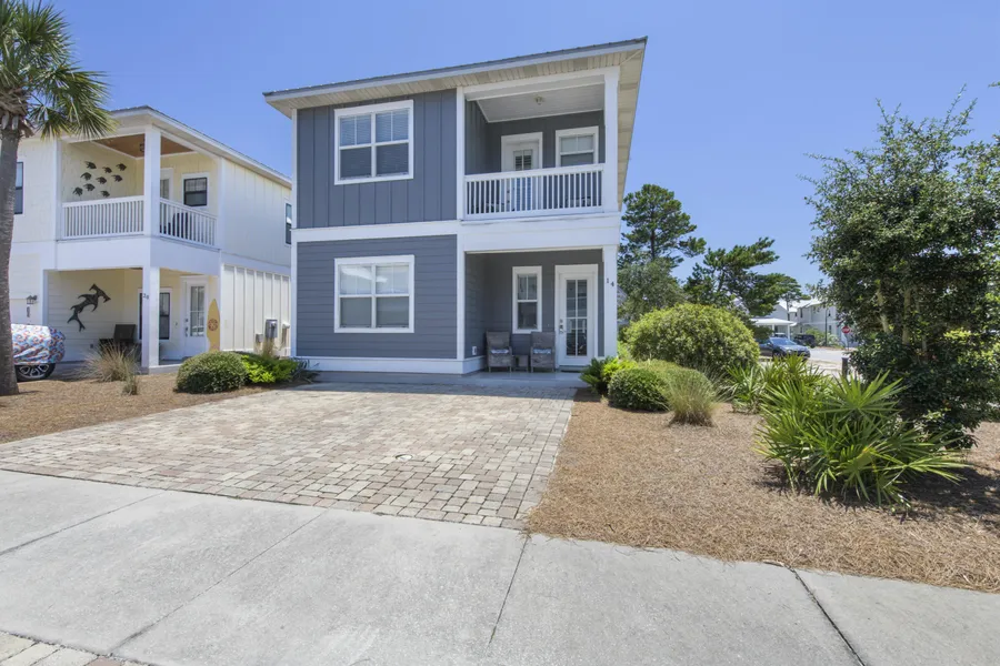 REDUCED!! Gone Coastal is a beautiful 4 bedroom and 4.5 bathroom home located near the sugary sands of the Emerald Coast, This home features 10 ft ceilings, wood/tile floors, custom kitchen and bathrooms. There is a master suite downstairs and an additional master suite upstairs with balcony. The third bedroom has a queen size bed and full bathroom with tub. The additional upstairs bedroom has custom built-in bunks that include a full bed with 3 twin beds to sleep 5. Custom built barn door feature. The home has a brand new A/C and heat unit. All countertops are quartz and bathrooms with custom tilework. The living and dining area overlook a small landscaped back yard. The home is situated on the corner and has plenty of space. This home is sold furnished and ready.