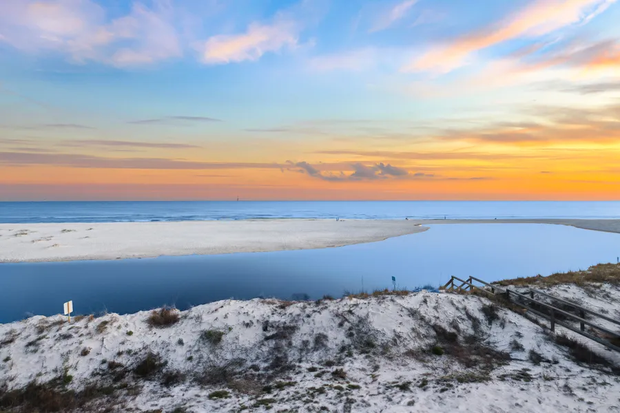 Presiding over serene dune, lake and gulf views, this quintessential beach house is in an exclusive private beach neighborhood. It comes with its own coveted Trex-plank walkover to the pristine white beach. Airy 12-ft. ceilings with dark wood beams enhance the great room, while the updated chef’s kitchen boasts granite countertops, stainless appliances and an island with a cooktop. Perch on stools at the lengthy bar for casual dining and conversation. Tile floors and double-aspect windows invite you to a large screened porch with panoramic views extending across Draper Lake and the Gulf of Mexico. The oversized balcony on the second floor is perfect for laid-back entertaining and toasting sunsets from this enviable location. Four of the six bedrooms share the same breathtaking gulf views. This exclusive gated community has a network of trails for exploring and wildlife spotting. There’s a heated community pool and a dock for paddle boarding, kayaking and fishing on the freshwater coastal dune lake. All this, just a short walk to Gulf Place shopping and dining.