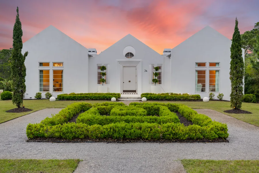 Welcome to 34 W Blue Coral Drive, a stunning blend of modern luxury and European charm, nestled in the serene beauty of Florida's Gulf Coast. Located in Blue Mountain Beach and situated off Scenic Hwy 30A, this home offers the perfect balance of resort-style living and easy access to world-class beaches, dining, shopping, and outdoor recreation. This exquisitely designed, single-level residence boasts 3,850 square feet of sophisticated living space. From the moment you step through the grand front door, you'll be welcomed by an inviting ambiance and seamless open-concept design that is perfect for both entertaining and everyday living. The central living area features a cozy fireplace framed by elegant ogee-style archways, while tumbled limestone flooring with a Schluter BEKOTEC floor system ensures year-round comfort. The gourmet chef's kitchen is a true highlight, featuring a Belforno ...